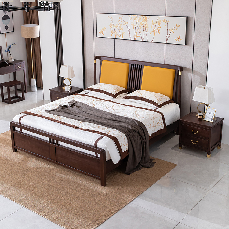 卡芬达228欧式双人三色威士忌皮实木雕花大床