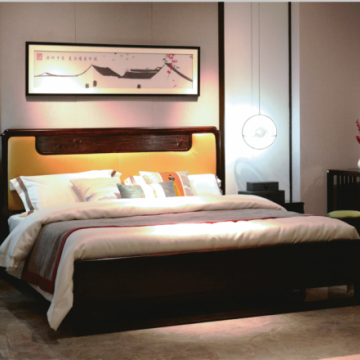 卡芬达228欧式双人三色威士忌皮实木雕花大床
